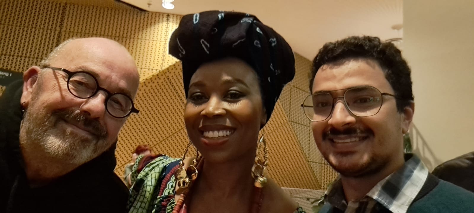 De aftrap was een succes: tijdens het concert van Ntjam Rosie genoten onze deelnemers zichtbaar van de muziek en de bijzondere sfeer. Op de foto zie je taalmaatjeskoppel Henry en Feras samen met zangeres Ntjam Rosie na afloop van het concert.